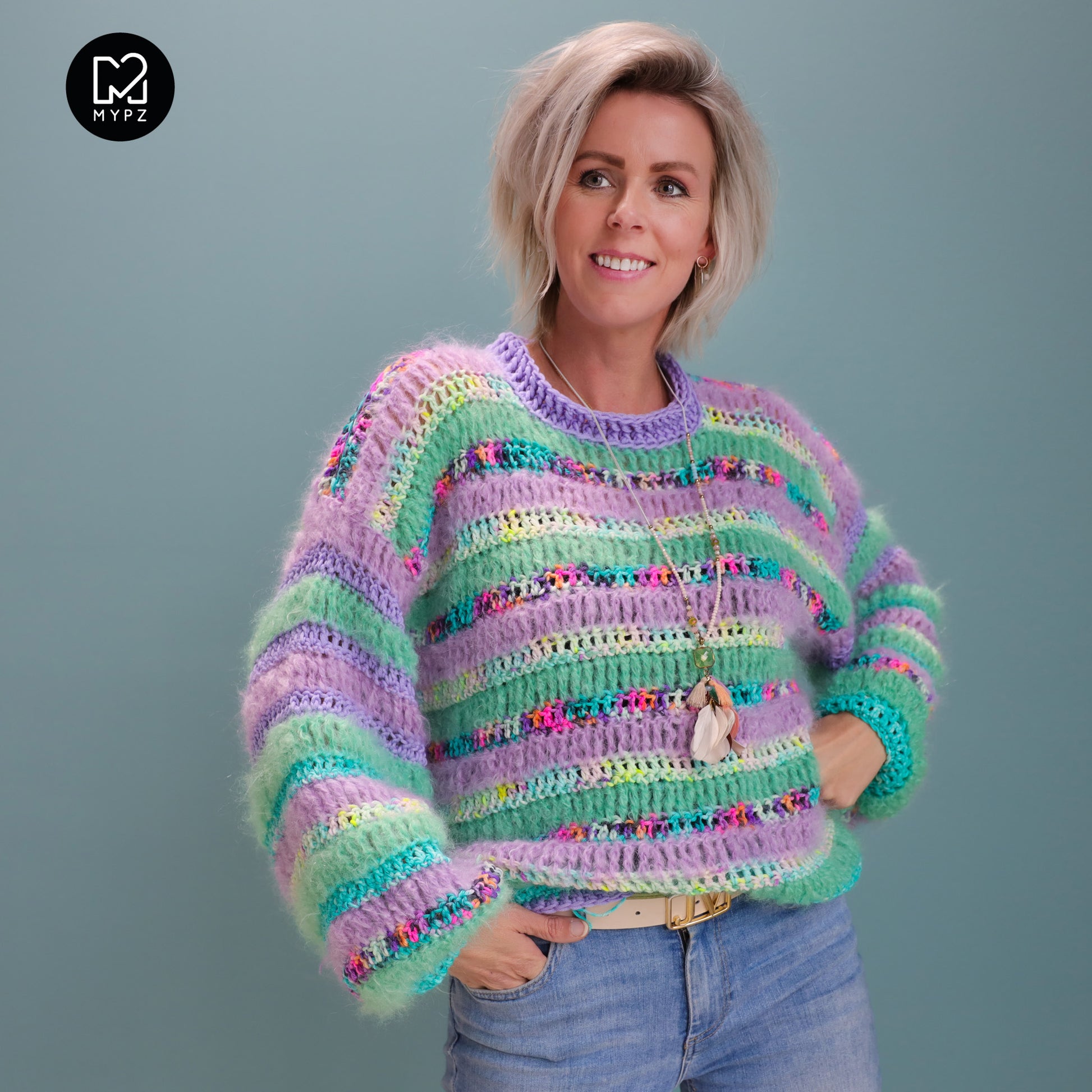 This is a handmade knit made by MYPZ in The Netherlands. Each cardigan or sweater is a unique piece and we take a lot of time and care to create these beautiful products. This sweater has a oversized fit.