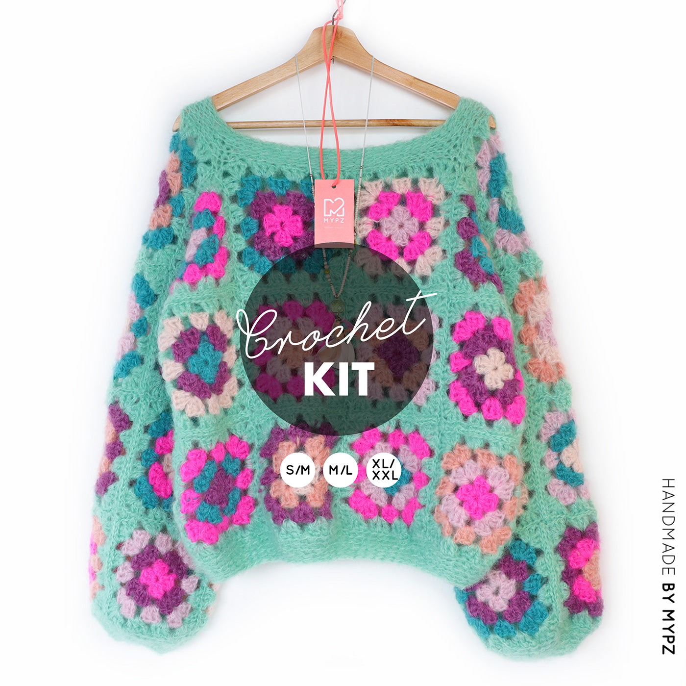 Crochet kit - MYPZ Granny square Mohair pullover Mint (ENG-NL)