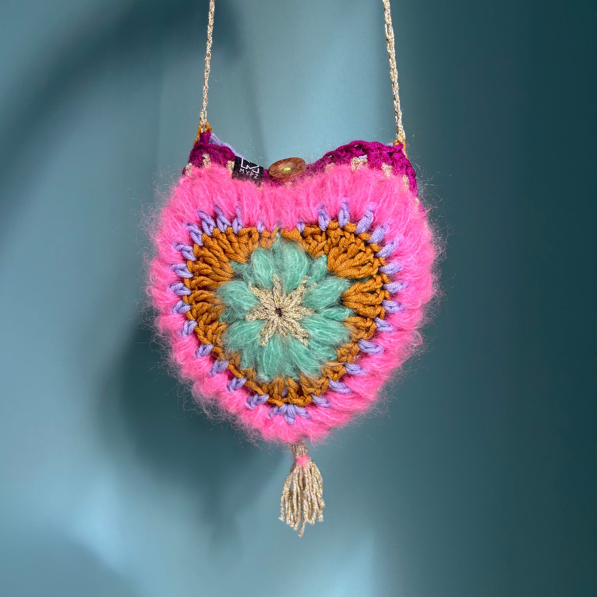 You can crochet the 3D Heart Bag using our luxurious mohair blend yarns in vibrant MYPZ shades. Perfect for medium level crocheters and experienced crocheters alike – soft, fluffy, and full of color.