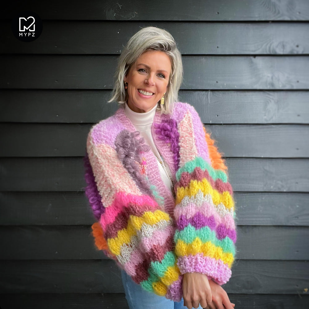 This MYPZ Rio no10 chunky mohair cardigan is perfect for those who are not quite beginners but not quite experts in the knitting world. It's a super cool and groovy project to tackle.