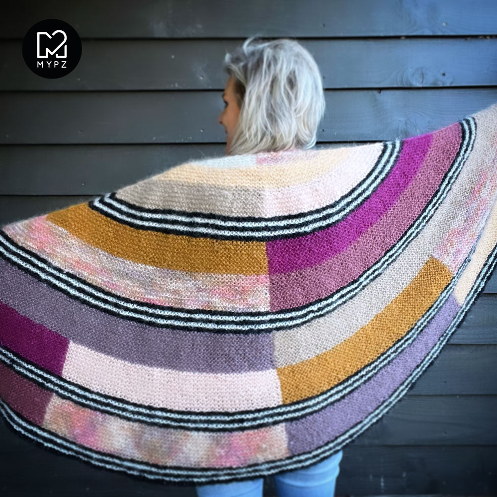 This soft warm shawl is a pleasure to wear and lightweight. This kit contains MYPZ Chunky Kidmohair DK, a high quality fine brushed mohair that does not pill.