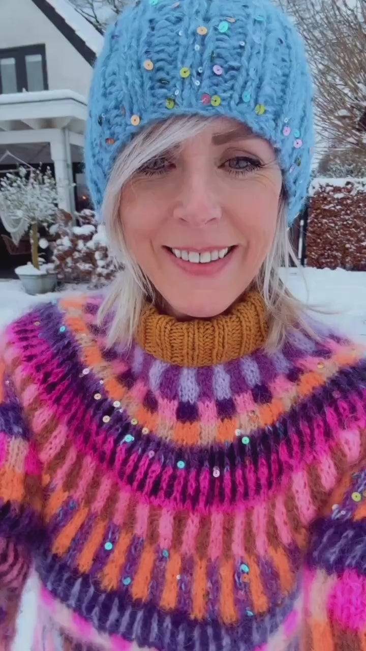 The Boho Firefly Sweater is an elegant, round-knit sweater with a refined fair isle motif. Knitted from top to bottom with a round yoke, this pattern combines traditional Scandinavian influences with a modern twist. The use of bright colors creates a subtle and timeless appearance. Whether you are an experienced knitter or this is your first fair isle project, this sweater offers a wonderful challenge and a beautiful end result. Perfect for cold days and cozy moments!