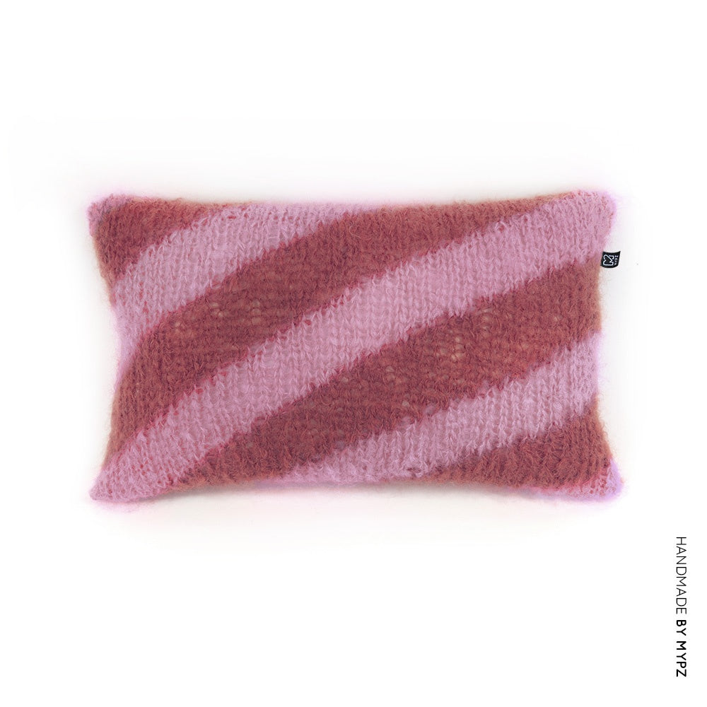 A beautiful soft and fluffy mohair cushion with diagonal striping.